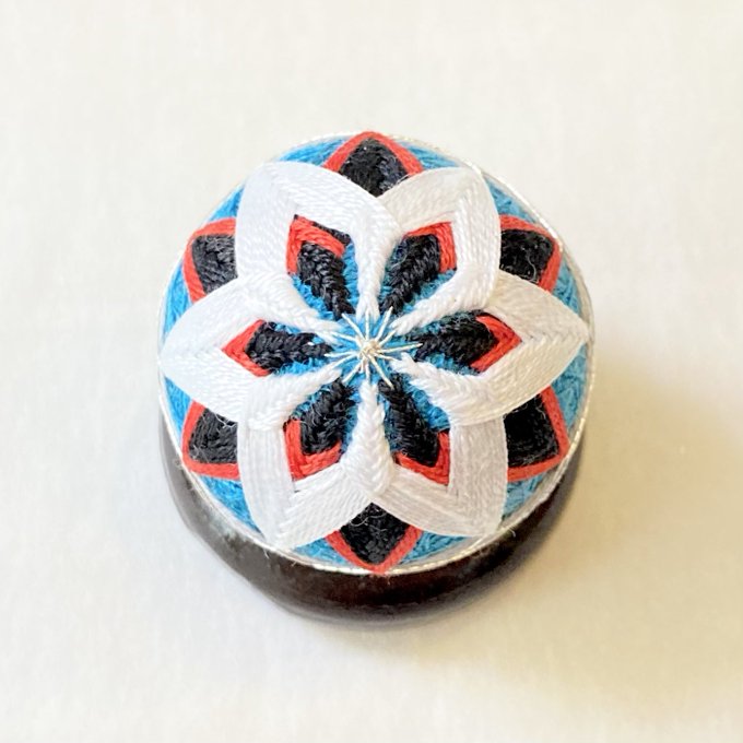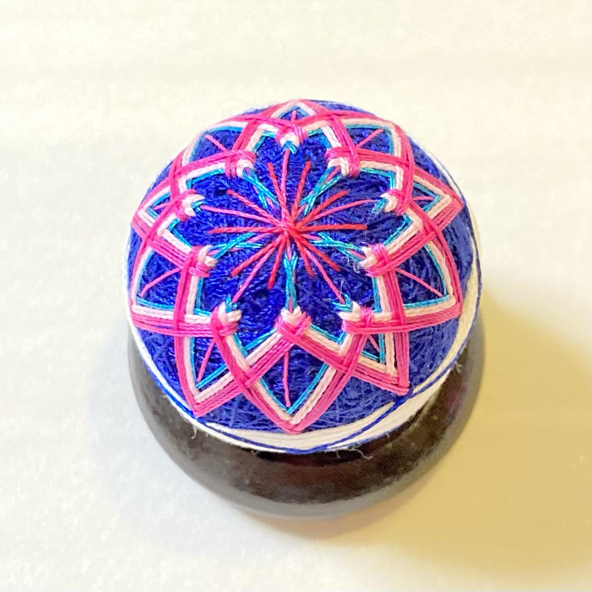 ヰ世界情緒さん(変異体 Heliotrope -ヘリオトロープ-)をイメージした手毬を作りました! 軽やかなドレスに描かれた夢中の花、明るいようでどこか異界の禍々しい雰囲気を漂わせるこの衣装が大好きです✨ 「Anima Ⅱ -神椿市参番街-」観測します! #ヰ世界情緒美術部 #ヰ世界情緒Anima2