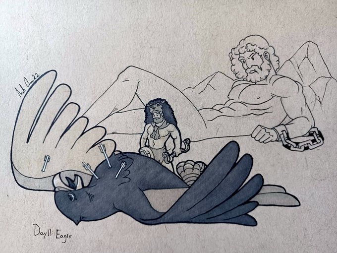 Day 11: Eagle Another Hercules myth. The rescue of Prometheus #inktober2022day11 #inktober2022eagle #inktober