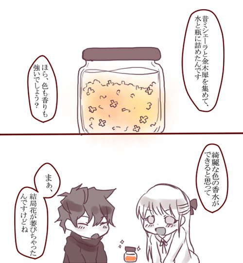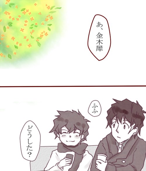 12 29 #スティレオ版深夜の真剣お絵描き60分一本勝負 お題:「金木犀」「思い出」 レオ君の何気ない思い出話を聞きたがるステブンさん。事前に挑戦してたんですが、ワンドロかなり越えてます…うっ 17/10/28 23:02