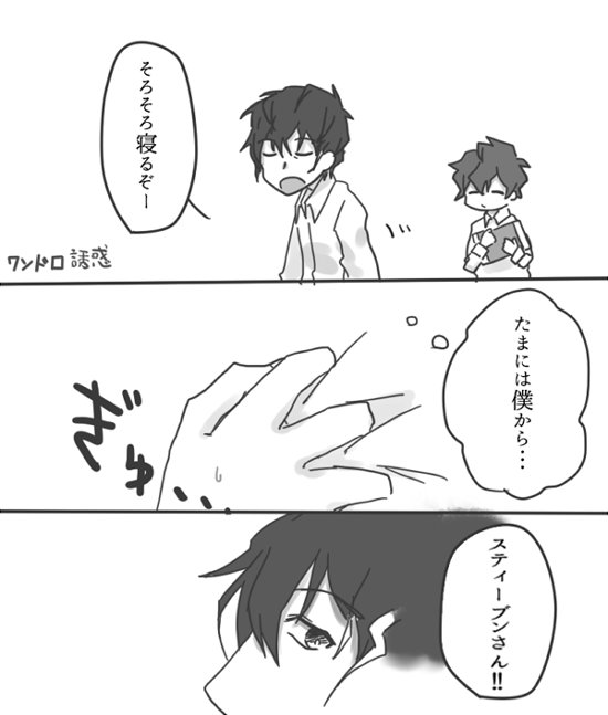 5 30 #スティレオ版深夜の真剣お絵描き60分一本勝負 何ドロだよってくらい時間オーバーですが、せっかくなので。お題「誘惑」です。スティーブンさん鍛えてるから…。 18/10/28 21:05