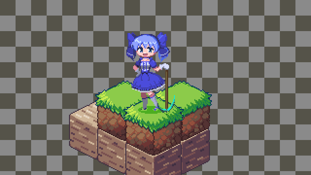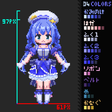 新しい3.5頭身基準作った✨ のに合わせて新デフォ衣装ちーちゃん! 横に回転させたい(アニメ制作はドットでも氏ゾ) #ちーあーと