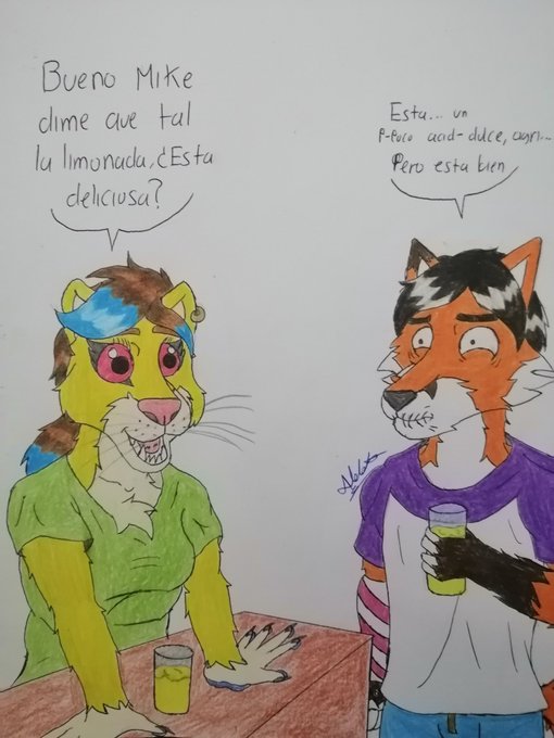 Buenas noches Día 11 "Agrio" Creo que Emily debería mejorar su receta de limonada, por que aparentemente a Mike le dio algo xd #inktober #OC #inktober2021 #Agrio #traditionalart #Furry