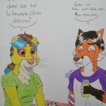 Buenas noches Después de un mes de haber vuelto volvemos otra vez XD Esta madre se la debía a @AnkhuMiller desde uuuuyyy, pero ya quedó, ya tienes tu salida a Coyoacán por unos churros, haber si dejas ya a Meli en paz #digitalart #furry #furryart #Churros #colaboracion