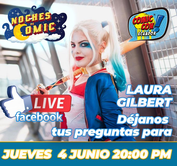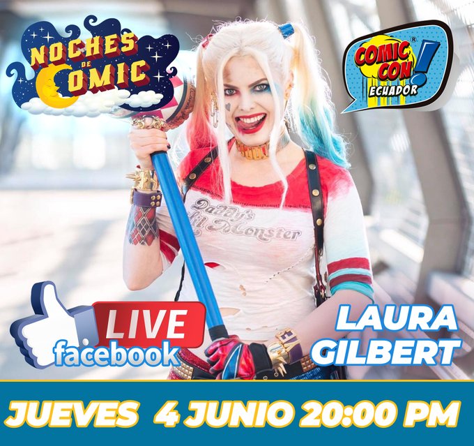 Este Jueves 4 de Junio contaremos con Infamous By Laura en Noches de Comic, déjanos tus preguntas en español o inglés en los comentarios. Los esperamos a todos este jueves a las 8pm. #comicconecuador #nochedecomics #lauragilbert #cosplay #HarleyQueen