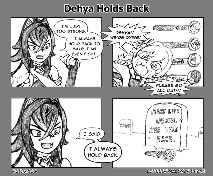 1 3 "Dehya Holds Back." #Dehya #GenshinImpact #genshinimpactfanart 23/02/16 14:43