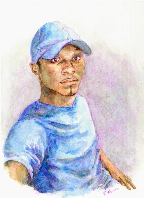 1 7 平田智暁作 「我が友ステファンの肖像」 水彩・紙 #水彩画 #コートジボワール 19/09/19 19:06