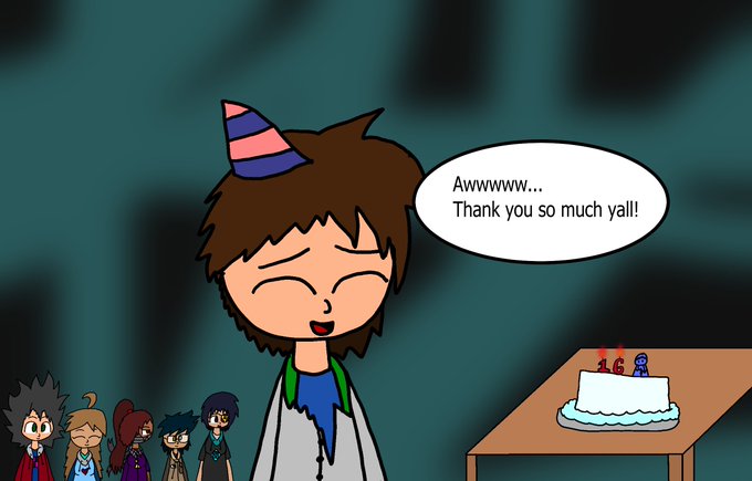 Its December 31st so of course, Happy new Years! but in lore, today is Brian Smiths birthday! So his friends decided to bake a cake for him! #OC #originalcharacter #myart #artistsontwitter #ArtistOnTwitter #digitalart