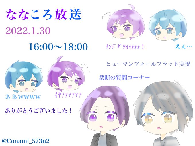 コラボ放送ころおつ、おつもりでした! ひゅまほ放送に禁断の質問コーナー面白かったです! #ななもりぎゃらりー #ころんぎゃらりー #なーくん #ころんくん #こなみから推しくん達へのお手紙です