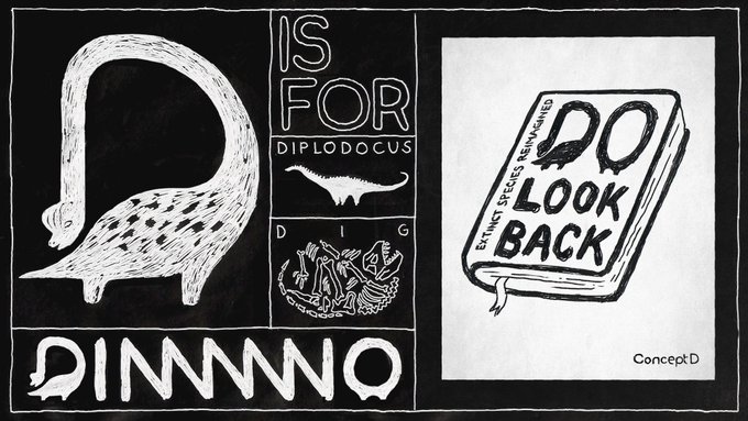 Types of D 014: Dino D is for Dino this #Fontsunday in #Inktober – meeting the day's theme of #Extinct with something from d-history. Dip your pen in our deft diplodocus design! #Inktober2021 #Prompt: #Extinct