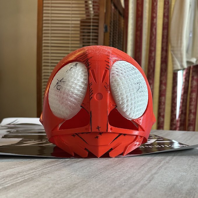 進捗‼️ 耳付近のカバー(当時はレザーだったらしい?)が付けば、さらに丸みが増すだろう。 出回ってるエセ3Dデータからは大分寄せたと思う。 そろそろ納得して塗るか?😂 #シン仮面ライダー #あのなんとも言えない魅力を求めて #コスプレ #マスク #耳にある無数の穴は後日