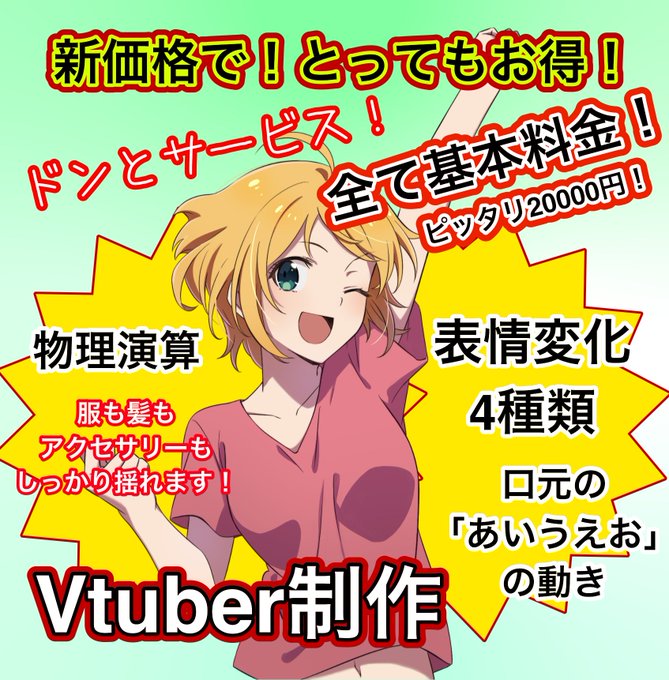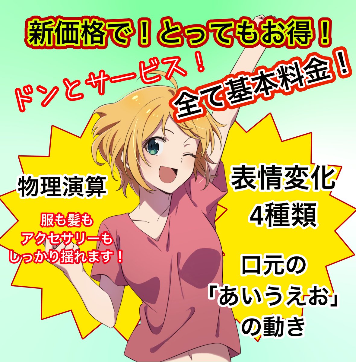 1 7 ココナラ様にてlive2d加工サービスを格安で展開しております。 物理演算、表情変化、「あいうえお」。全て標準実装で20000円! ご質問、ご相談、無料見積もりも随時受け付け中。 是非ご利用くださいませ。 #vtuber #coconala #live2d #イラスト coconala.com/services/690910 22/12/26 15:19