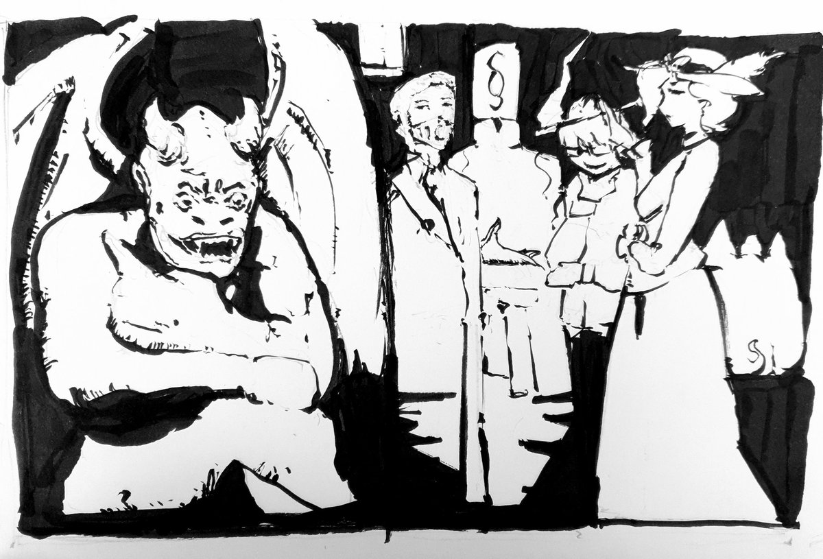Day 1: Rohvan, The Great Immortal, Terrence, and Lady Lucy meet at their specified location at the rooftop with the gargoyles I wanted to do both OC-tober and the official Inktober just to make this challenge a bit more fun. #inktober2022 #inktober #inktober2022day1