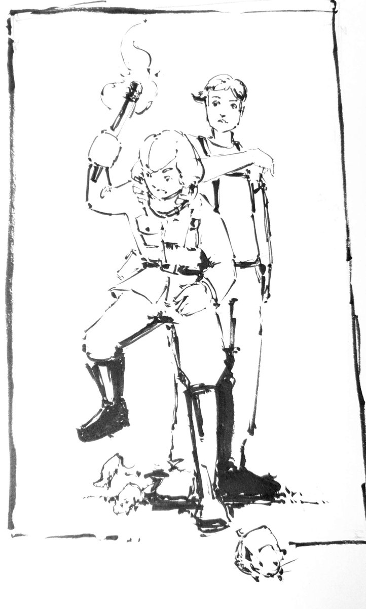 Day 2: Alessa and Nathaniel feel unseen creatures scurry past their feet as they take a route through the dark Alessa belongs to @Ap_Orc and Nathaniel belongs to @shiftedcomics #inktober2022 #inktober #inktober2022day2 #oc #originalcharacter #characterart