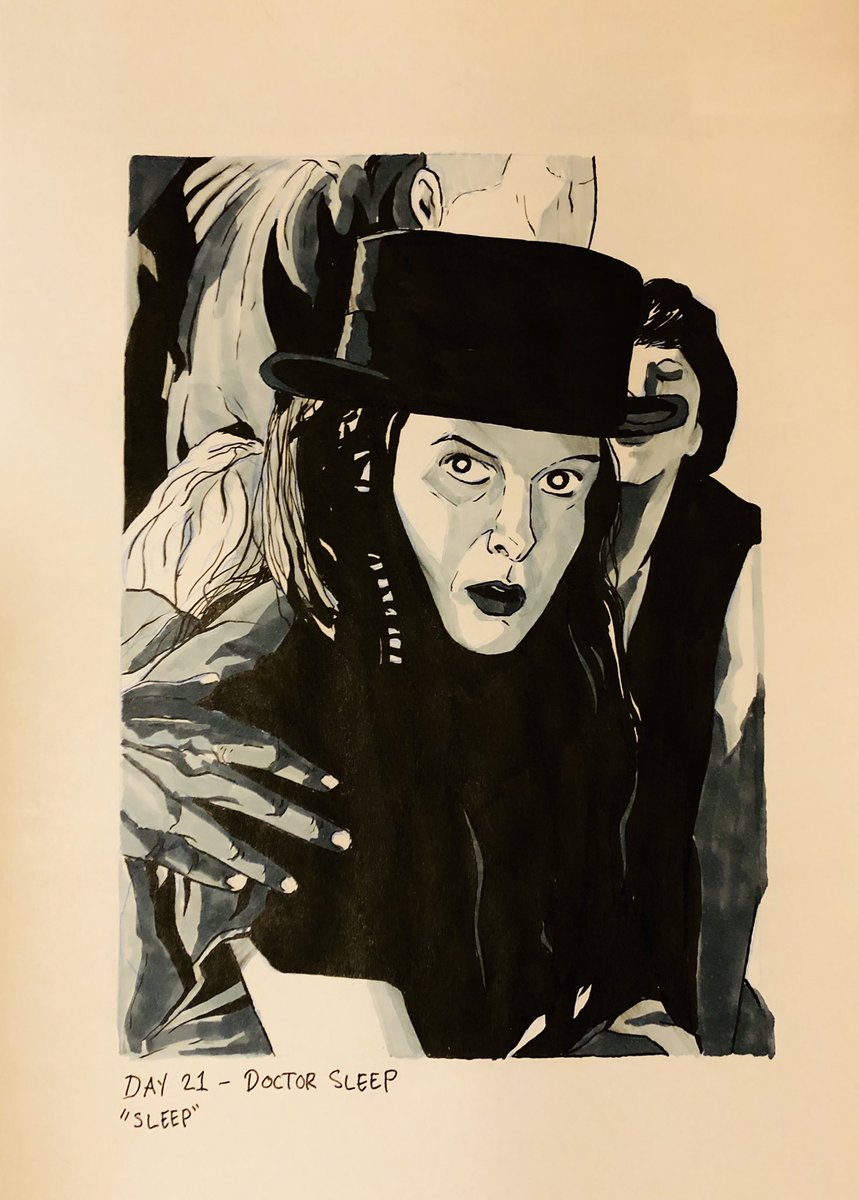 Inktober Day 21 - “Sleep” - Doctor Sleep (2019) . Late on this one because I decided to rewatch The Shining before checking this out. It’s not the classic the first one was but really fun and a great nostalgia trip. . #inktober2020 #ink @inktober #sleep #doctorsleep #stephenking