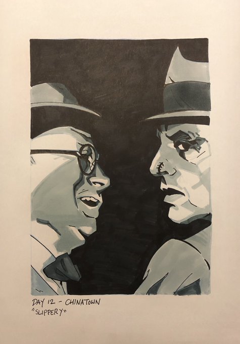 Inktober Day 12 - “Slippery” - Chinatown (1974) . Good movie, it’s a shame it was made by a literal monster. . #inktober2020 #ink @inktober #slippery #chinatown #jacknicholson