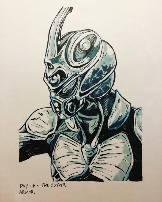 Inktober Day 14 - “Armor” - The Guyver (1991) . Needed to pick a tone, but the creature and Guyver suits were great. Also turns out @HamillHimself is great in everything! . #inktober2020 #ink @inktober #armor #theguyver #markhamill