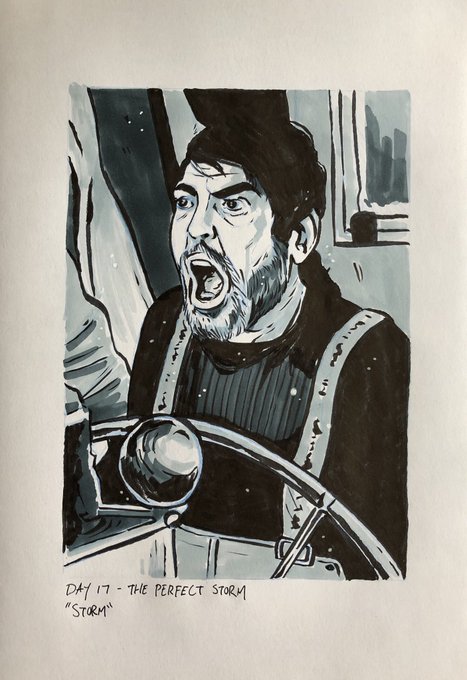 Inktober Day 17 - “Storm” - The Perfect Storm (2000) . Good movie. Honestly surprised I’d not seen this one before. Good performances all round, of a bit ‘over dramatic’ in some places. . #inktober2020 #ink @inktober #storm #theperfectstorm #georgeclooney