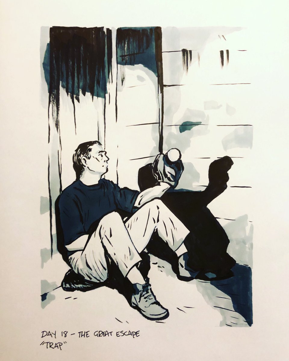 Inktober Day 18 - “Trap” - The Great Escape (1963) . Charming as hell. Engaging from beginning to end. . #inktober2020 #ink @inktober #trap #thegreatescape #stevemcqueen