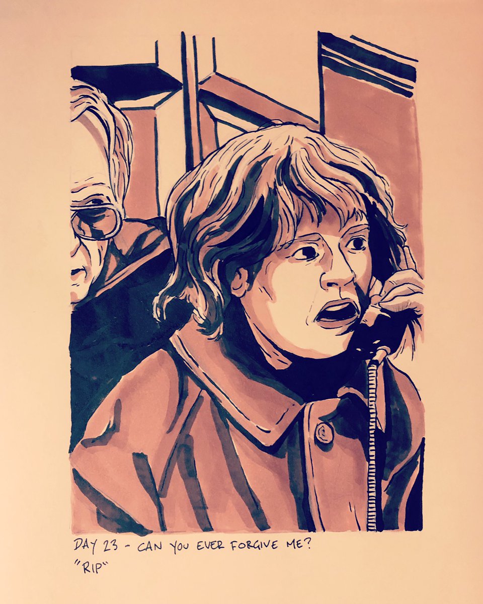 Inktober Day 23 - “Rip” - Can You Ever Forgive Me? (2018) . Acting clinic by Melissa McCarthy and Richard E Grant. A dirty, exciting little movie. . #inktober2020 #ink @inktober #rip #canyoueverforgiveme #melissamccarthy #richardegrant
