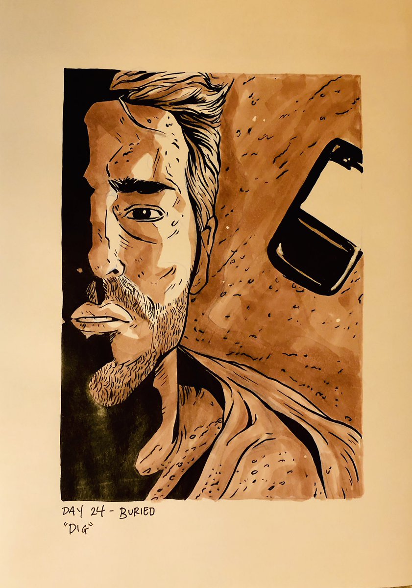 Inktober Day 24 - “Dig” - Buried (2010) . Really cool concept, didn’t overstay it’s welcome and (spoilers!) what a heartbreaking ending! . #inktober2020 #ink @inktober #dig #buried #ryanreynolds