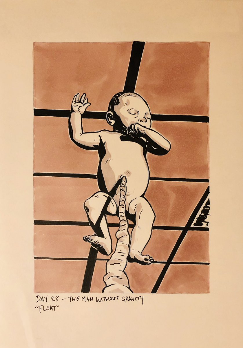 Inktober Day 28 - “Float” - The Man Without Gravity (2019) . Good concept but ended up being a pretty standard flick, it’s possible something was lost in translation. . #inktober2020 #ink @inktober #float #themanwithoutgravity