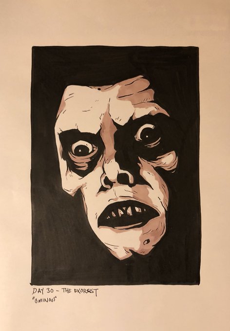Inktober Day 30 - “Ominous” - The Exorcist (1973) . Great movie. Some of the effects being dated and the fact I’ve seen so many parody versions meant it lost some of the scares. But overall, brilliant. . #inktober2020 #ink @inktober #ominous #theexorcist #horror
