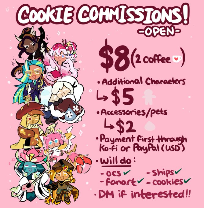 Cookie c0mms are back! If you’d like to support me or are interested please dm me! If dms don't work these are also on Ko-Fi, link below!🍪 #cookierun #cookierunkingdom