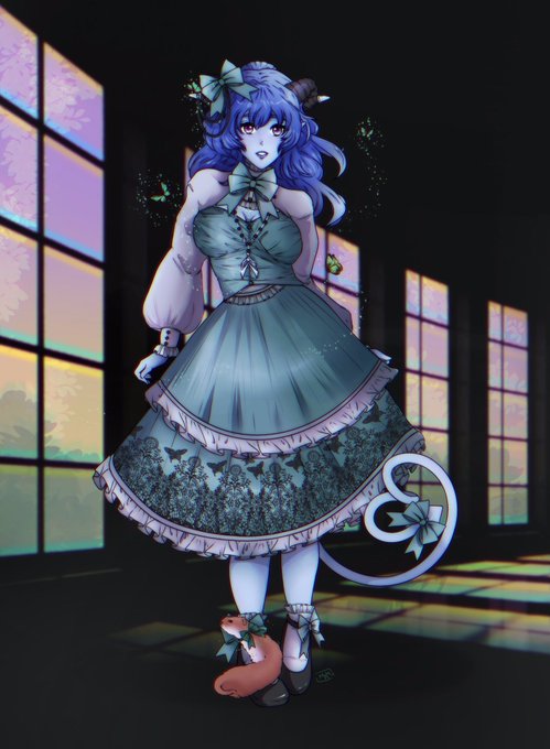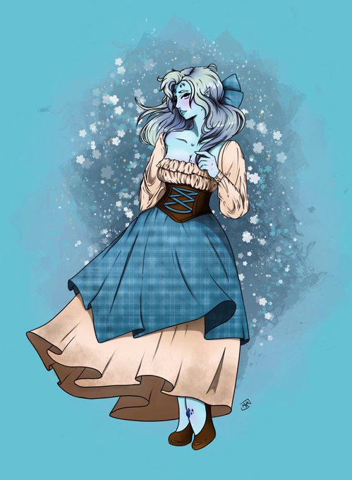 My sweet girl tempest looking super cute in this outfit! 💙💜 #DnDcharacter #dndart #ArtistOnTwitter #opencommissions