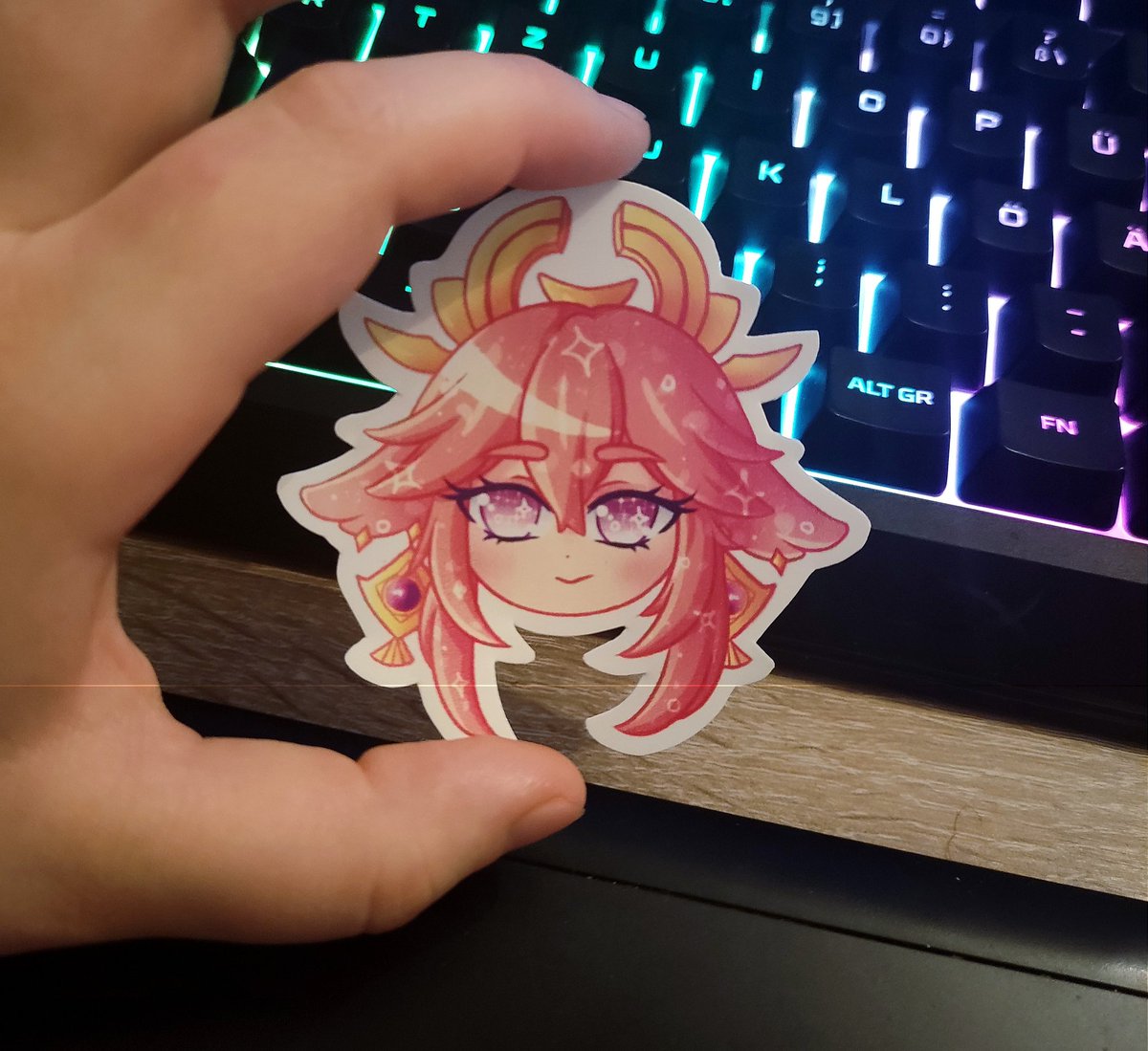 The printer finally decided to work!!🎉 So here are some Yae Miko stickers!!🌸 . . . #GenshinImpact #genshinimpactfanart #Genshin #yaemiko #Sticker #Chibi #cute #digitalart