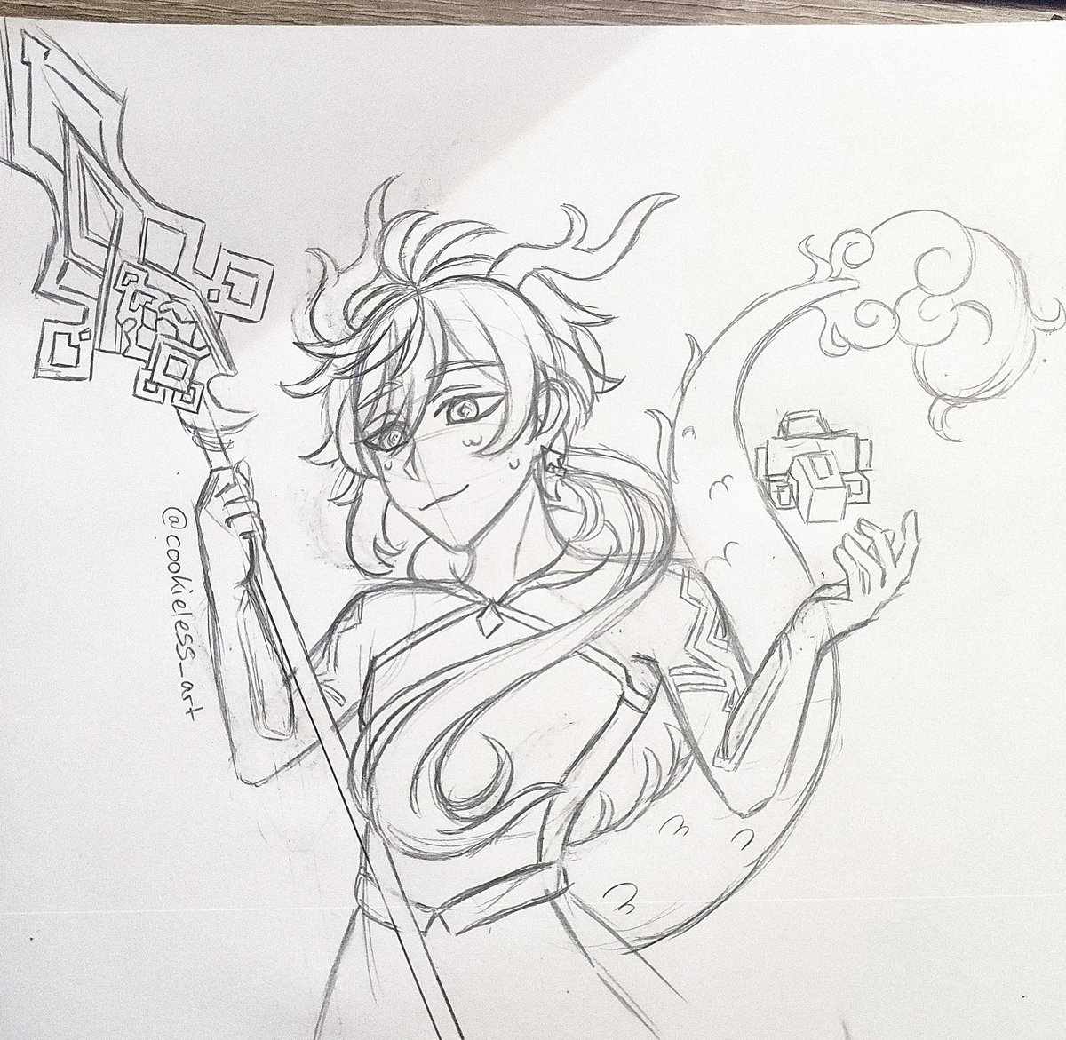 I missed drawing traditional art so here's Dragon Zhongli!! 💛 . . . #zhongli #Morax #Genshinlmpact #genshin #genshinimpactfanart
