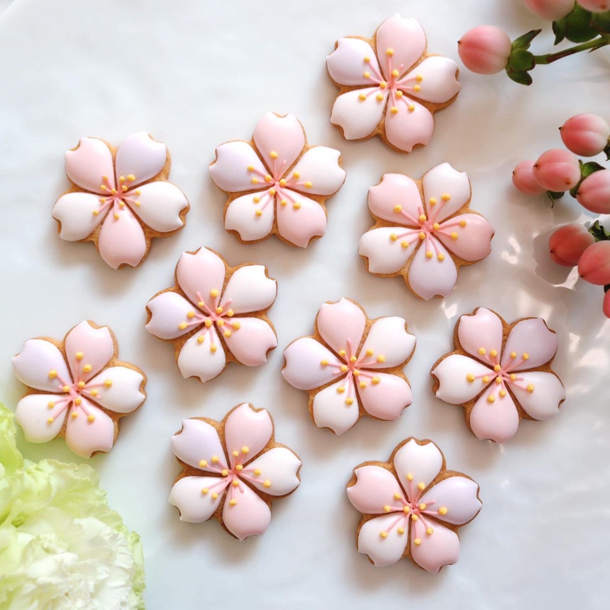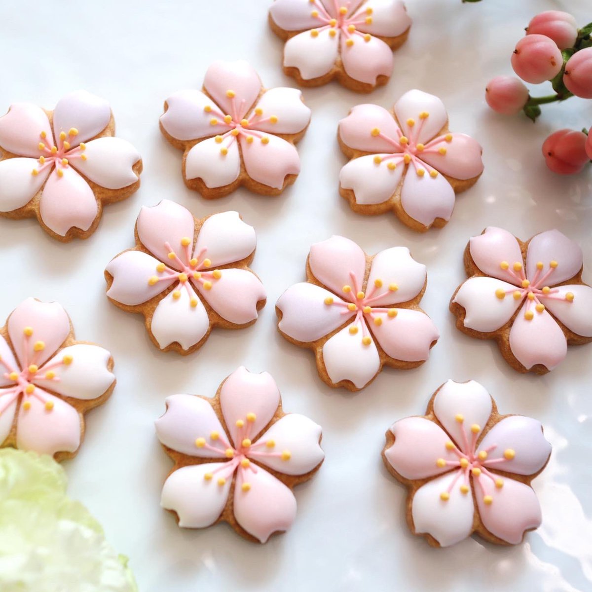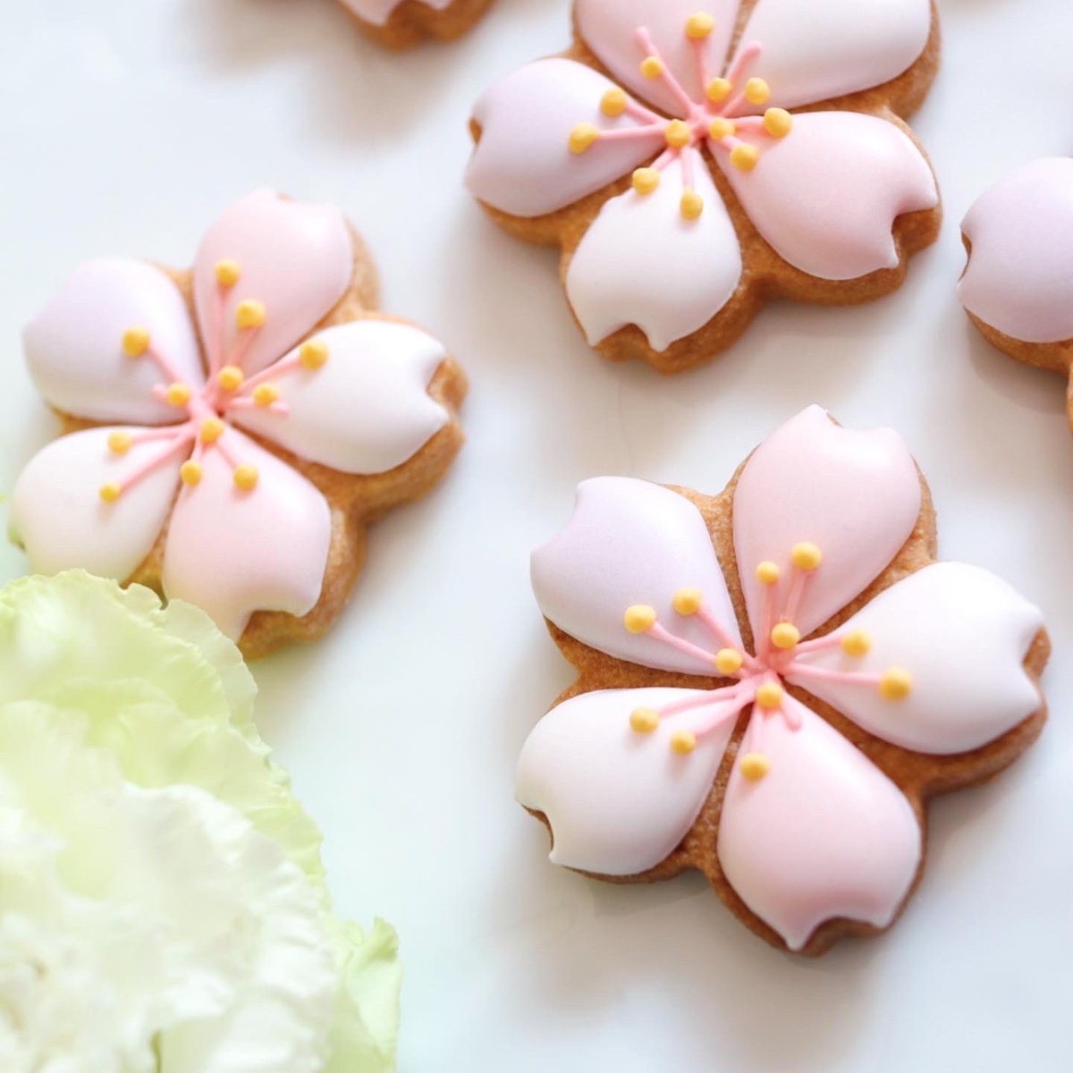 🌸桜アイシングクッキー🌸 昨日の動画で作ってた桜クッキーの完成形がこちらです⸜(๑⃙⃘'ω'๑⃙⃘)⸝💕