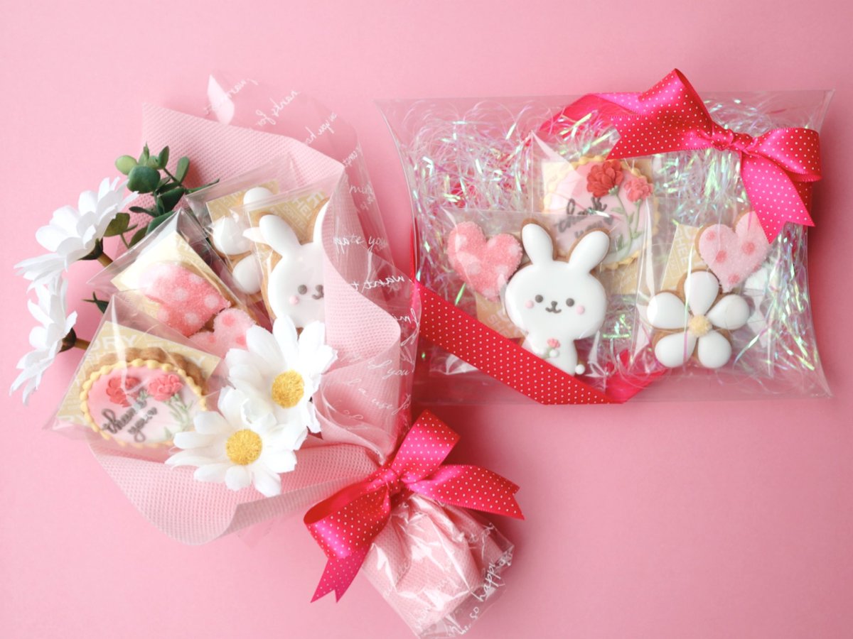 28 146 🌹母の日アイシングクッキー🌹 アイシングクッキー体験がしたいと声を掛けていただきまして、簡単かわいい感じを目指して計画しました❤️ ラッピングはどちらの方が需要が高いと思われますか|ω・)チラ? 22/04/24 15:50