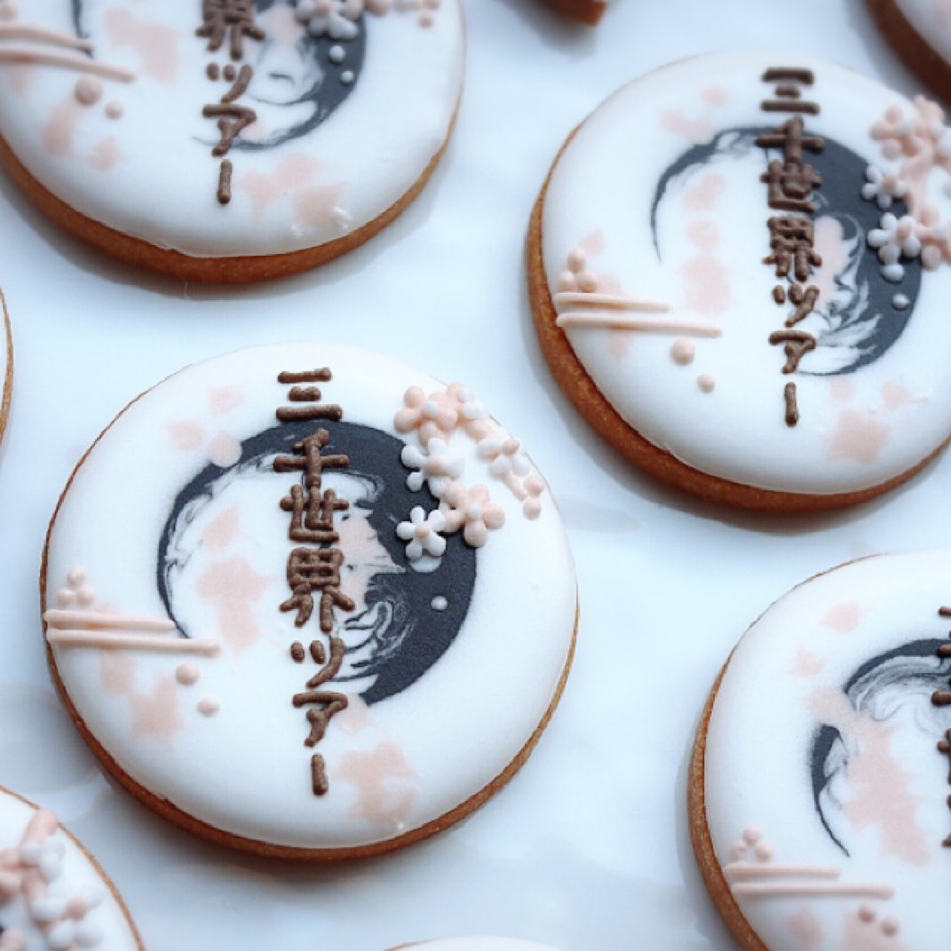65 375 ♬伊東歌詞太郎さんクッキー♬ ご依頼をいただいて、狐面と三千世界ツアー文字入れのアイシングクッキーをお作りしました❤️ デザインおまかせだったので、画像検索しまくって三千世界感に寄せてみました。(寄れてると良いな🍀) ツアーで配られるとのことでした😊 喜んでいただけて良かった❤️❤️❤️ 22/05/11 21:25
