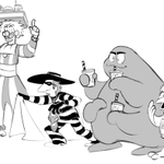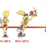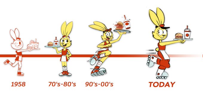 Discord drawing event where we had to make our own food mascots. This is Pepper, the Pep-Stop Rabbit. I thought it'd be fun to show the evolution of the character and reflect on design trends. The modern one would get controversy over giving her pants