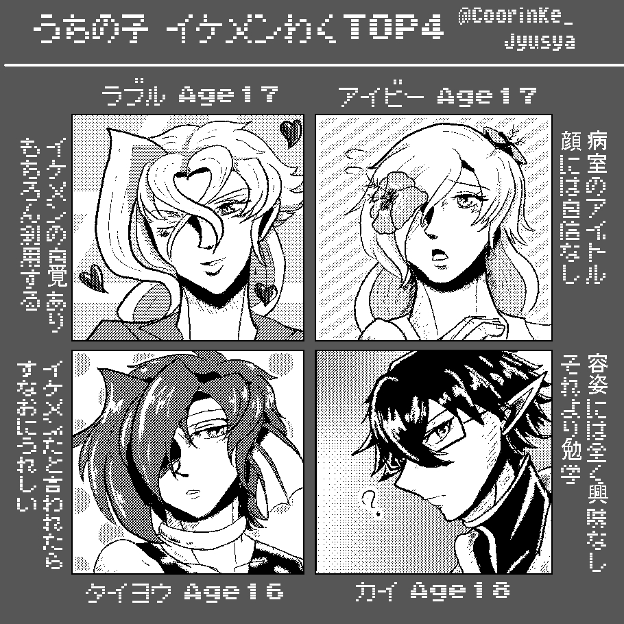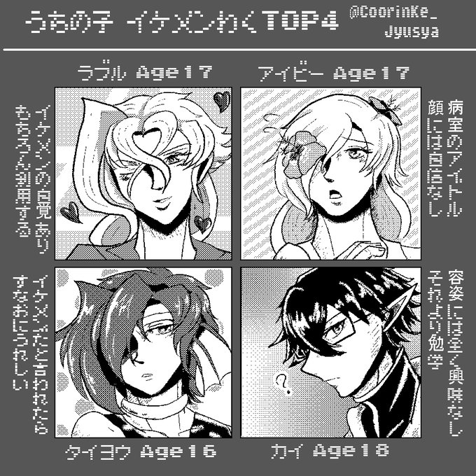 絵チャ企画【皆様のオリキャラ描かせてください!】の絵が完成しました! ステキなキャラを描けて勉強になりました・・・! 左が参加者様のイラスト、その右に自分が描いてます! 正直がんばったから、とても褒めてほしい!! #絵チャ #オリキャラ #イラスト