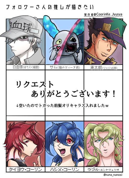 #フォロワーさんの推しが描きたい ようやく完成しました・・・!リクくれた方々 遅くなってすみませんでしたああ!! 次やるときはもっといろいろ描けるように特訓するんだ・・・!