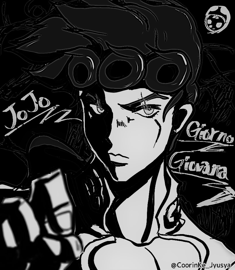 #描いた絵をモノクロにするとかっこいい 便乗マン 参上! ジョルノ君しか描いてないじゃん!