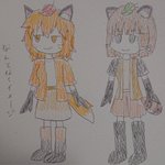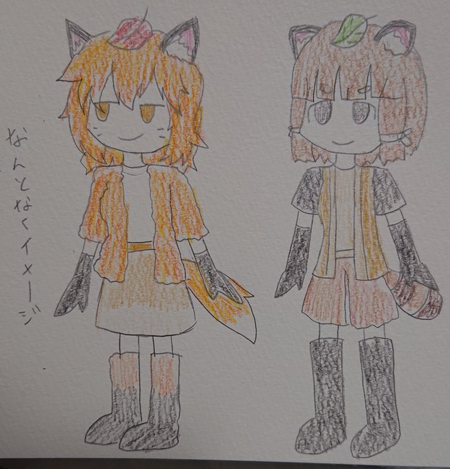 #へんあーと 今日のタヌキとアライグマの見分け方の動画を見てから ふと「元のキツネとタヌキっぽい服を着せるのもいいんじゃないか…!?」 と思ったけどやっぱり立ち絵の方もオリジナル服を着せてる方も皆センス凄いなぁって