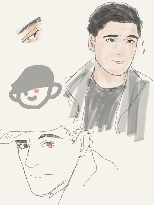 2 6 マクくん上目遣い多いよなって。どこか幼さを感じます🌙左下は、「ワッ!まつ毛バッサァだワ!」と思い模写ったジェイクさん🚕 #MoonKnight #illustration 23/03/15 20:34
