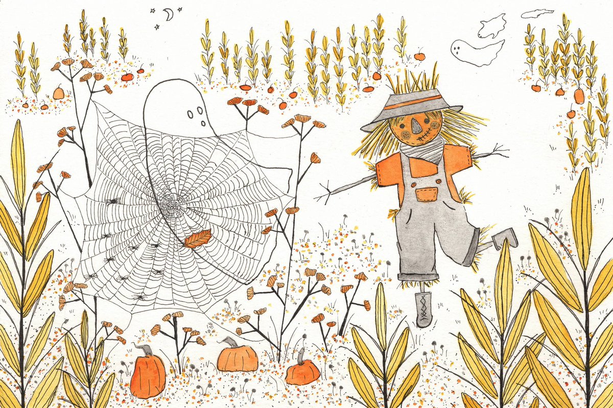 How is tomorrow October 1st? Posting #scbwiArtober early. Happy #Halloween season! @scbwi #ghost #scarecrow #scbwi #illustrators #kidlit #kidlitart #kidlitillustrator #illustrator #illustration #traditionalart #scbwiillustrator #womeninillustration #CortneyBenvenutoIllustration