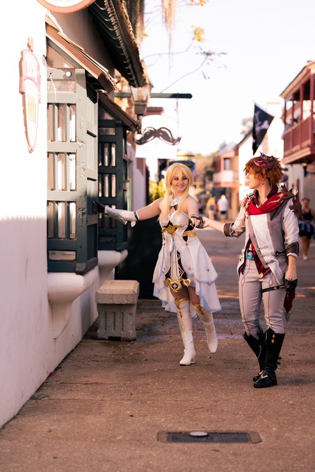 2 12 Tartaglia and Lumine strolling around the local markets in the town With: @levelonecosplay 📸: @MhuberP #GenshinImpact #Lumine #tartaglia #Childe #chilumi #GenshinImpactcosplay #cosplayers #cosplay 22/11/07 17:25