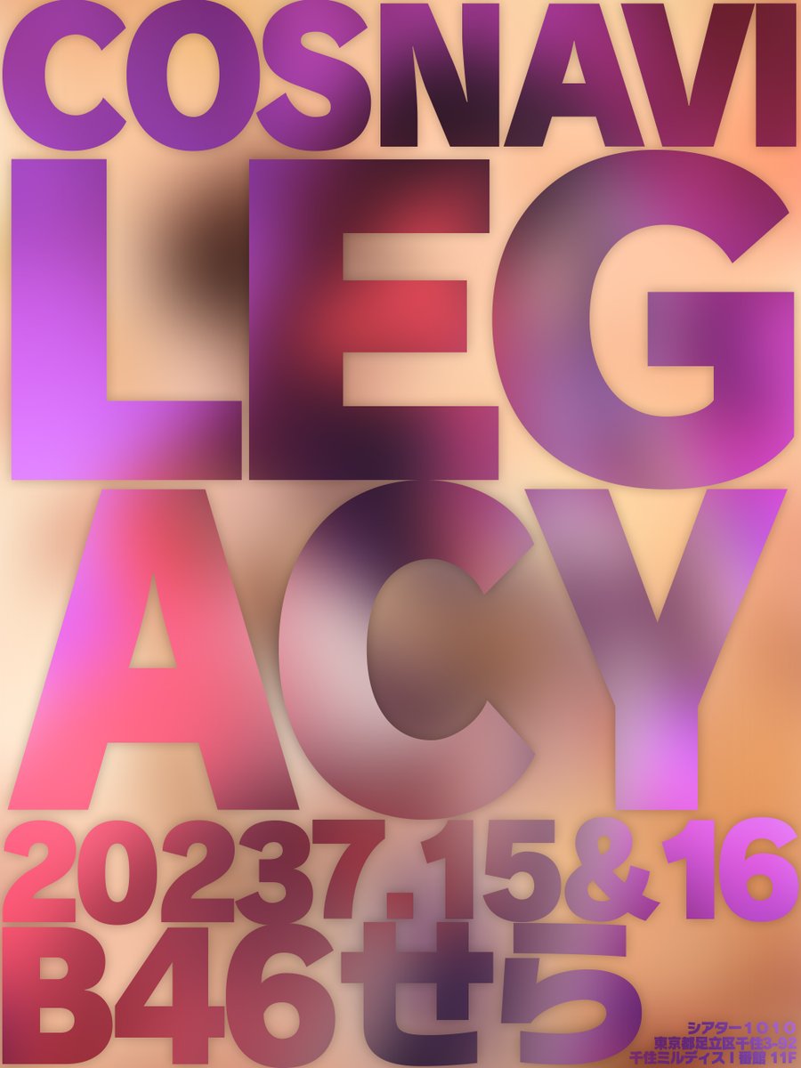 コスナビ写真展 Legacy 2023 でます!! せら、B46にいます!! まだなんも準備してません😇 ===== 7/15(土) 7/16(日) at Theater1010 #レガシー2023 HP cosnavi.biz/2hqp =====