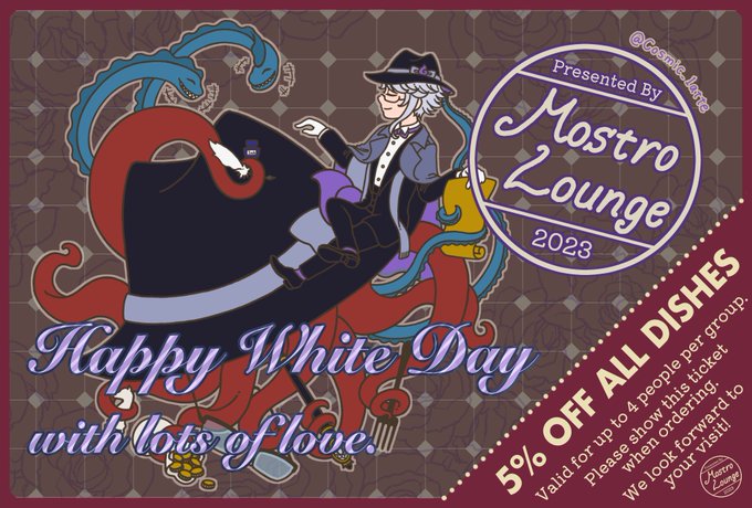 ☕️🤎 𝙃𝘼𝙋𝙋𝙔 𝙒𝙃𝙄𝙏𝙀 𝘿𝘼𝙔 🤎🧁 本券1枚につき1グループ4名様まで有効です ご注文の際に本券をご提示ください ──チケットより抜粋── #twstファンアート #ツイステファンアート
