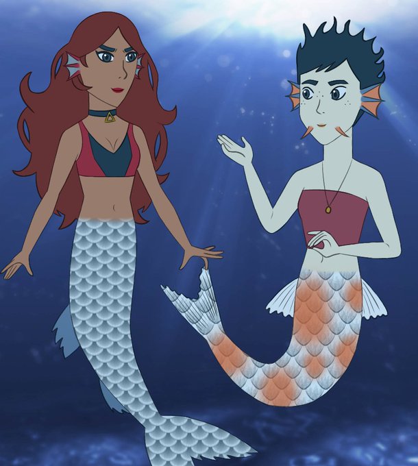 Carmen as an Argentina fish and Jules as a Chinese koi carp. #carmensandiego #carmensandiegofanart #carmensandiego2019 #mermay #mermay2021 #juliaargent #julethief #carulia #mermaids