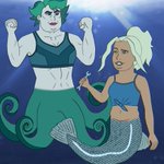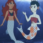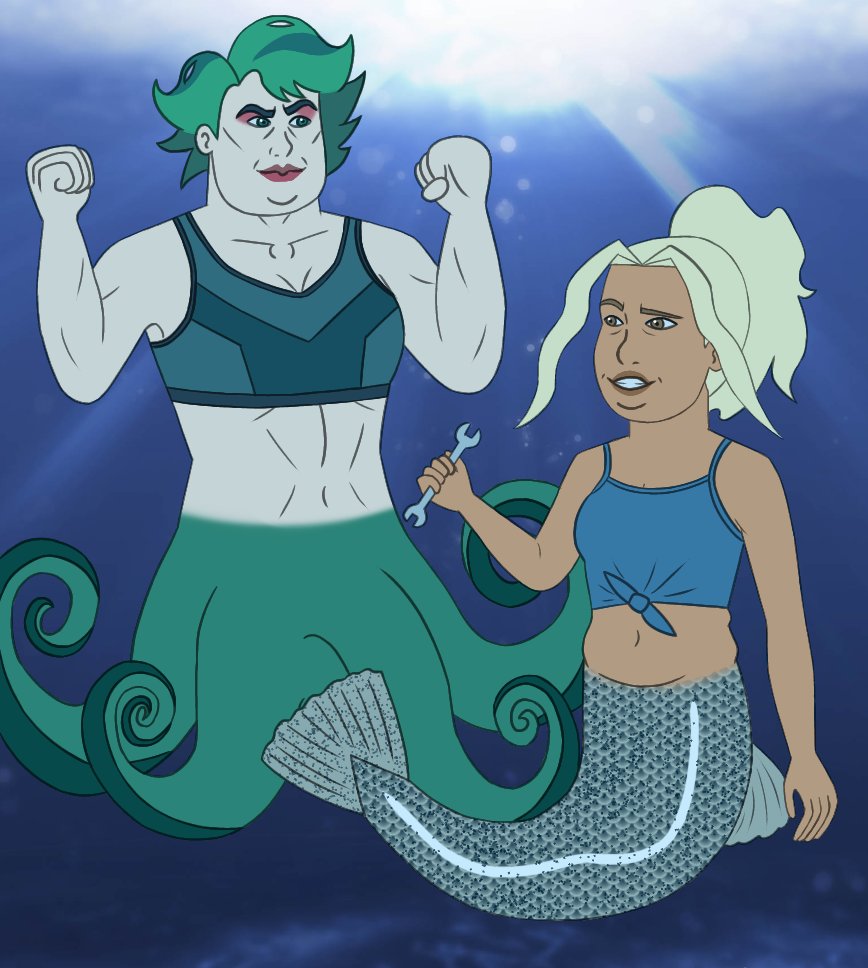 Coach Brunt as an octopus and the Mechanic as a cod fish (the sort that she would eat with chips!) #CarmenSandiego #CarmenSandiegofanart #CarmenSandiegonetflix #coachbrunt #themechanic #mermay #mermay2021 #mermaids #fanart