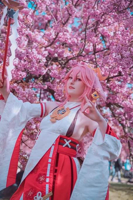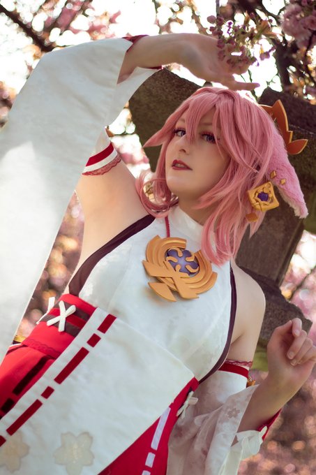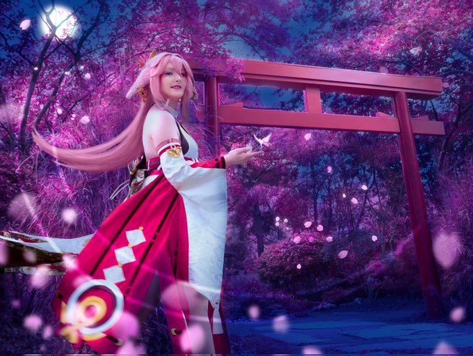 Happy birthday to the Guuji of the Grand Narukami Shrine, Yae Miko ! Here is an amazing photo by SongRiku of my handmade Yae Miko cosplay 💗 Don't you think the colors are amazing ? #genshinimpact #photography #cosplay #handmade #yaemiko