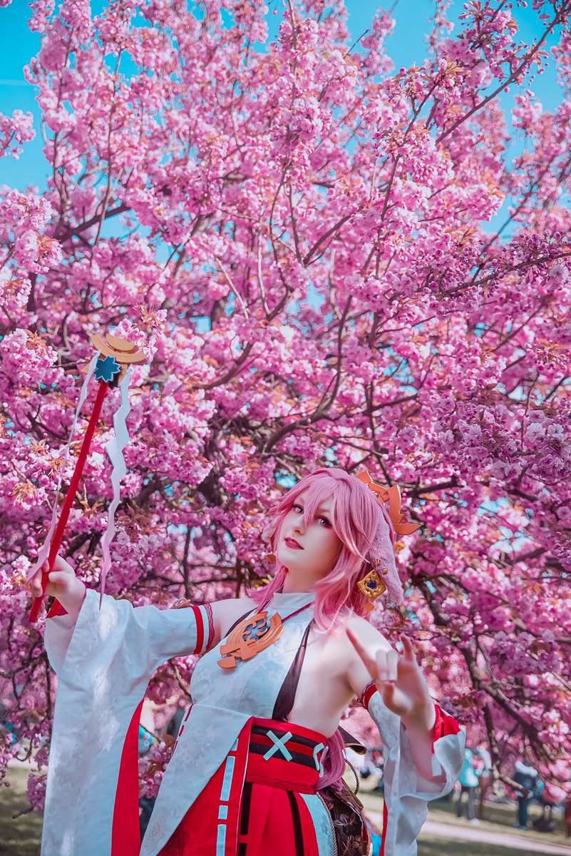 Repeat after me, 3, 2, 1. 1, 2 3. First photo in the cherry blossom for this year! Of course I had to take photos as Yae Miko! 📸 Apocosplay ✂️ Cosplay handmade by me #Genshin #genshinimpact #cosplay #yaemiko #yae #cosplayer