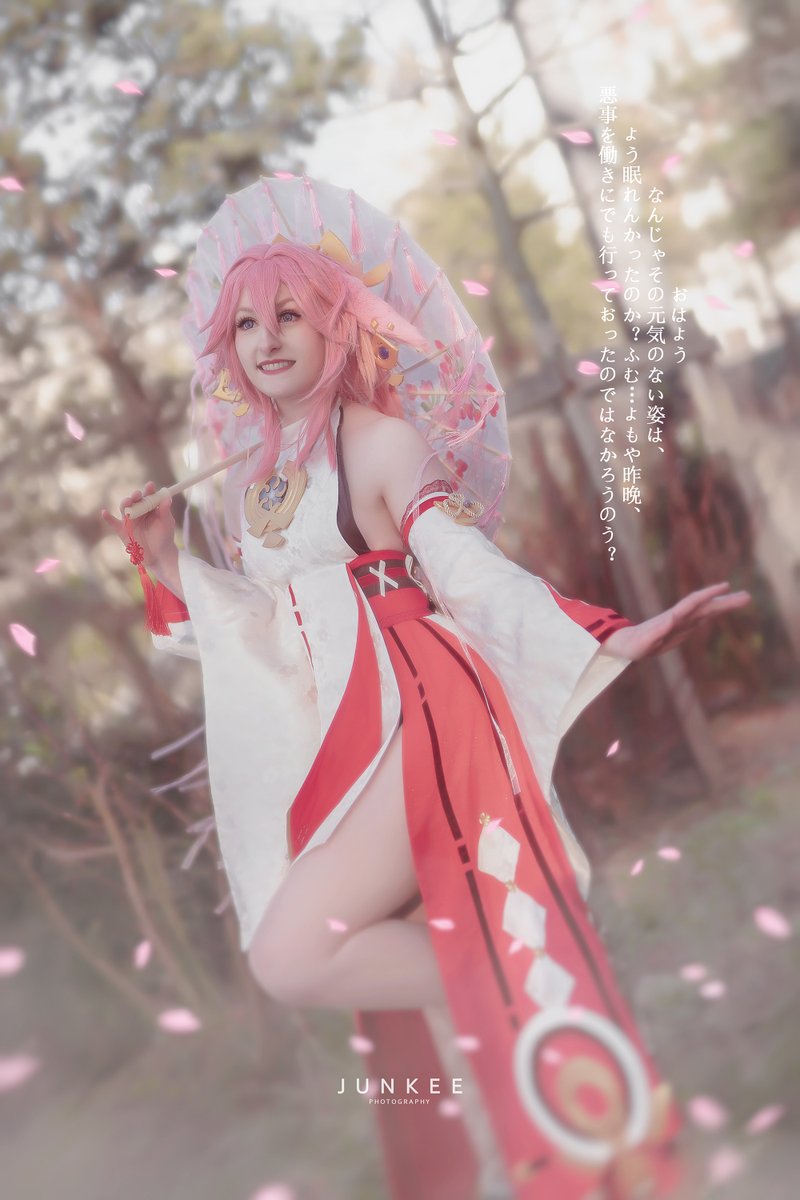 New amazing photo and edit by Junkeephotography of ly handmade Yae miko cosplay 🥺💗 Isn't the fox totem perfect? 😆 #GenshinImapct #cosplay #yaemiko