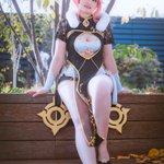 Casual Ningguang cosplay today ! 💗 I made the bustier especially for her 💗 And I wore my favourite earrings! Never too big xD photo by Cryde photography #ningguang #cosplay #genshinimpact #photography