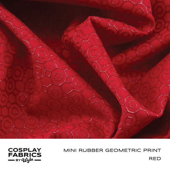 The red mini rubber geometric fabric is perfect for anime or video game cosplays! What would you use this fabric for? Available in the U.S from @JoAnn_Stores and online via joann.com and intl., from our site cosplayfabricsinternational.com #animecosplay #videogamecosplay